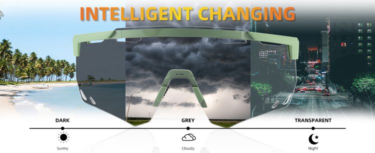 چه در هوای آفتابی، چه ابری و چه هنگام غروب، این عینک بهطور خودکار روشنایی و تیرگی لنز را تغییر میدهد تا چشمهای شما از اشعههای مضر خورشید (UV400)، گرد و غبار و باد در امان بمانند.
